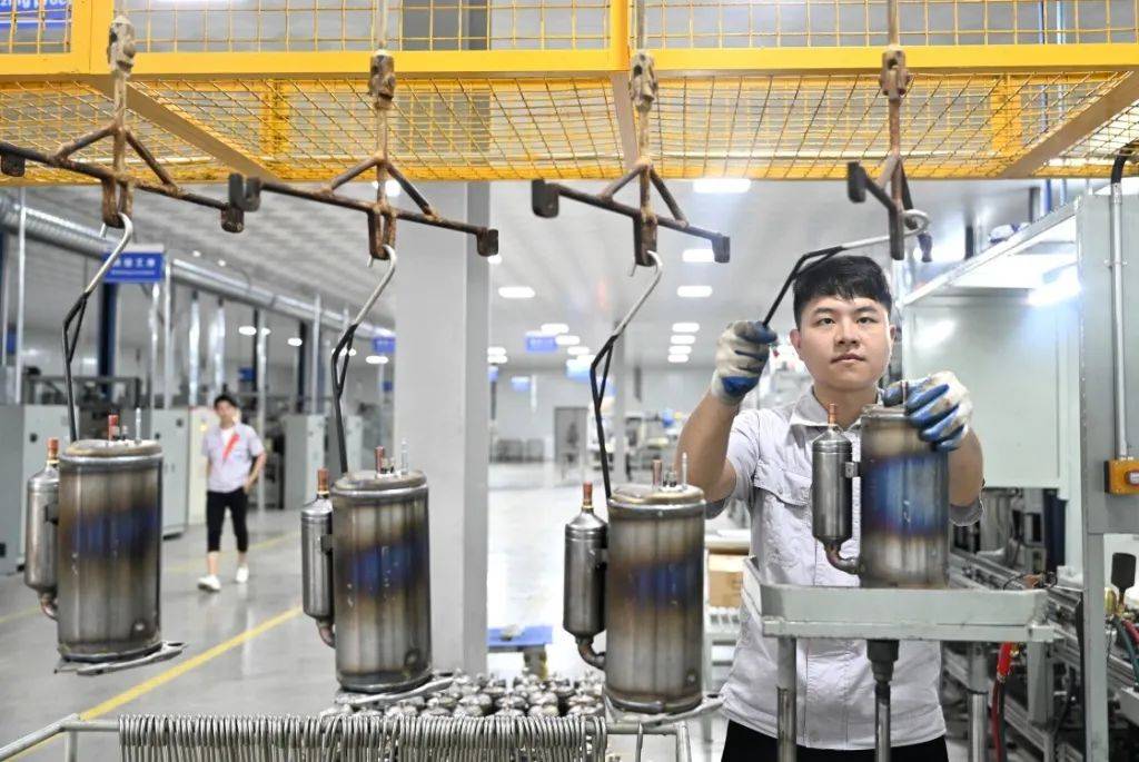6月2日,工人在廣西柳州市柳江區一家空調壓縮機企業的生產車間內忙碌。新華社發