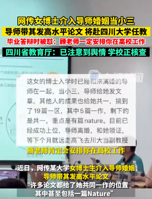 網傳女博士介入導師婚姻,畢業答辯被懟,兩高校最新回應