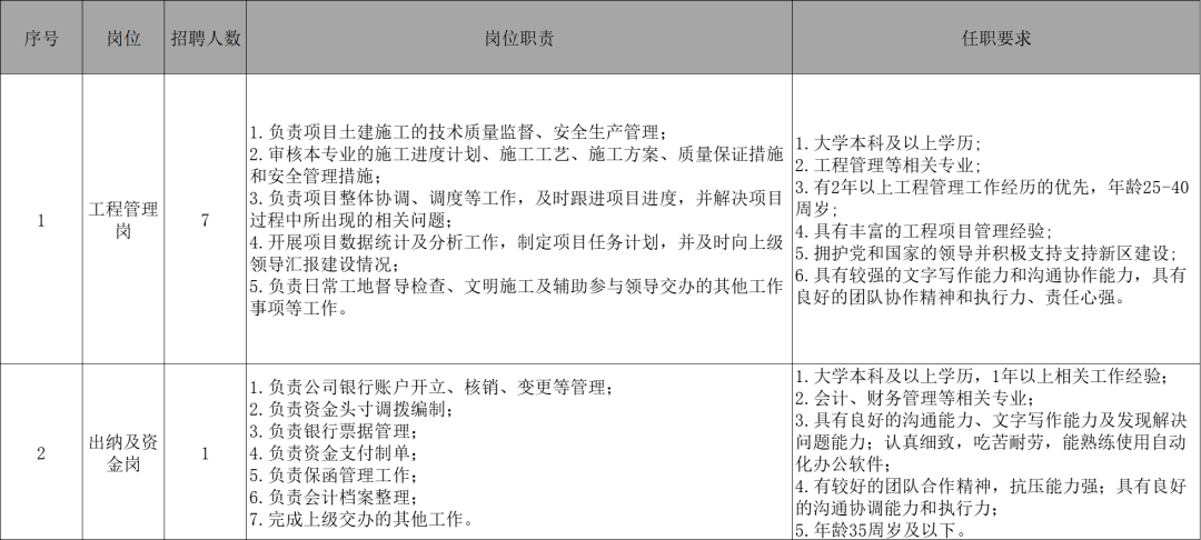 河北雄安人力資源服務有限公司(以下簡稱雄安人力公司)根據工作需要,現面向社會公開招聘項目員工,工作地點在雄安新區,從事工程管理、出納及資金等相關工作。