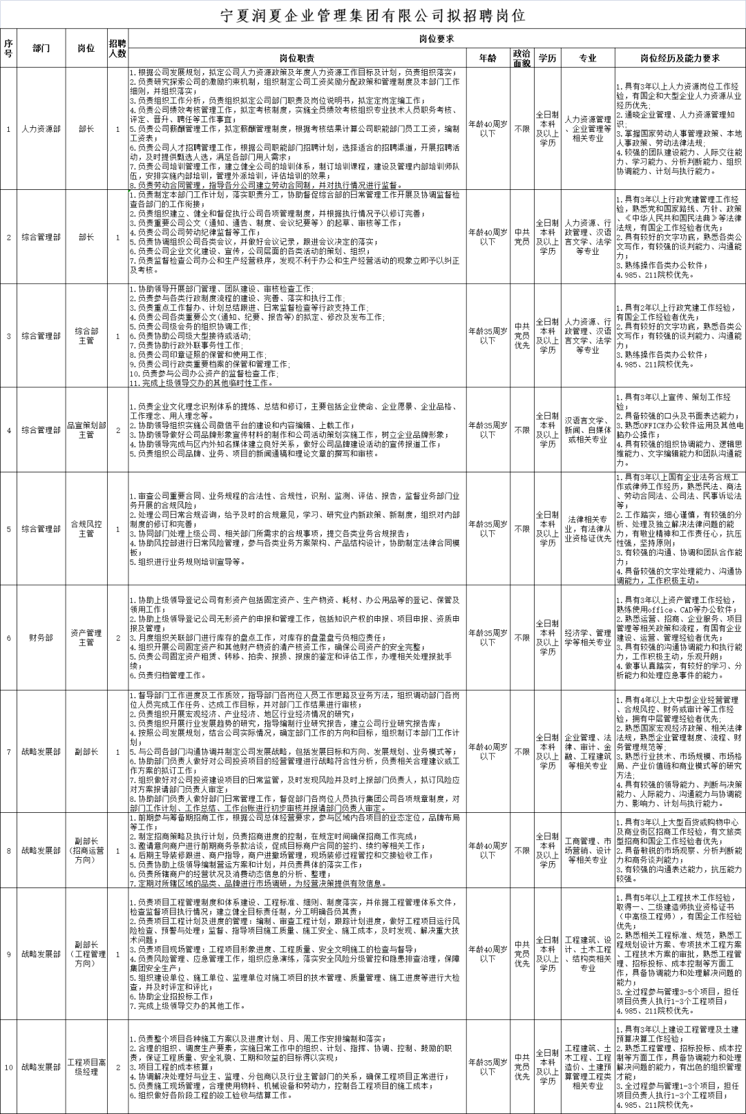 寧夏潤夏企業管理集團有限公司中層管理崗位招聘公告