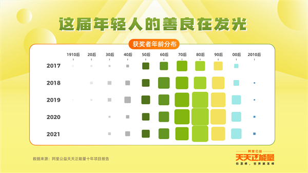 從年齡層來看,70、80后是各種正能量行為的中堅力量,以90、00后為代表的新生力量也在迅速增加,青年一代正扛起公益大旗。從獲獎群體來看,學生、醫護、司機、農民、小店業主,是始終如一的愛心群體,而新時代村官、快遞員、外賣員、網絡主播、社區工作者等也不斷涌現,獲獎者身份的時代特征日趨明顯。同時,凡人善舉從以個人為單位,轉向更多地以家庭為單位。2022年,有8%的正能量的獎勵最終發放給家庭。