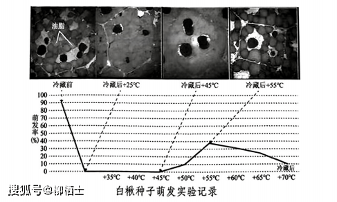 D. 實驗中白楸種子的萌發率在55℃時最高,然后隨溫度上升而下降,這說明種子在萌發時若超過一定溫度會再次進入休眠狀態。