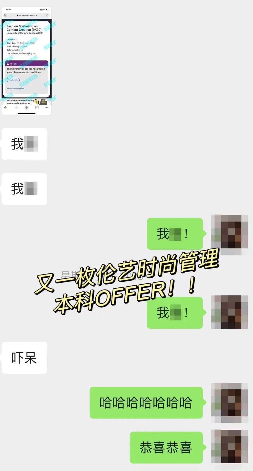 A: 收到了倫藝的BA Fashion Marketing and Content Creation offer簡直激動且難以置信,打開ucas的時候甚至被嚇呆了!然后馬上發了給Anka老師,哈哈哈哈~ 真的超級無敵開心!因為倫藝LCF時尚營銷本科是我的第一志愿!啊啊啊~ 要去我的dream school 讀書啦!