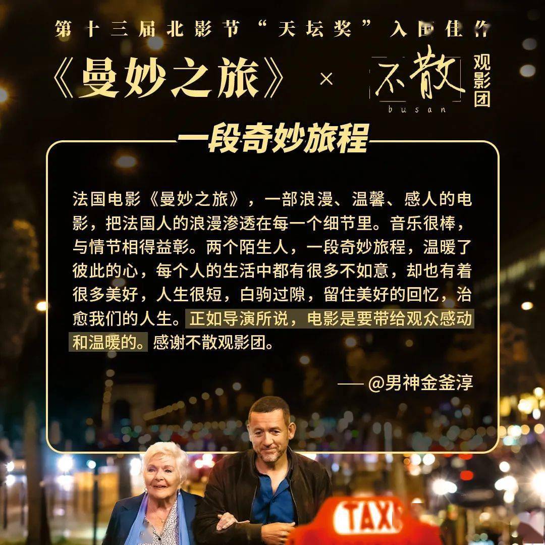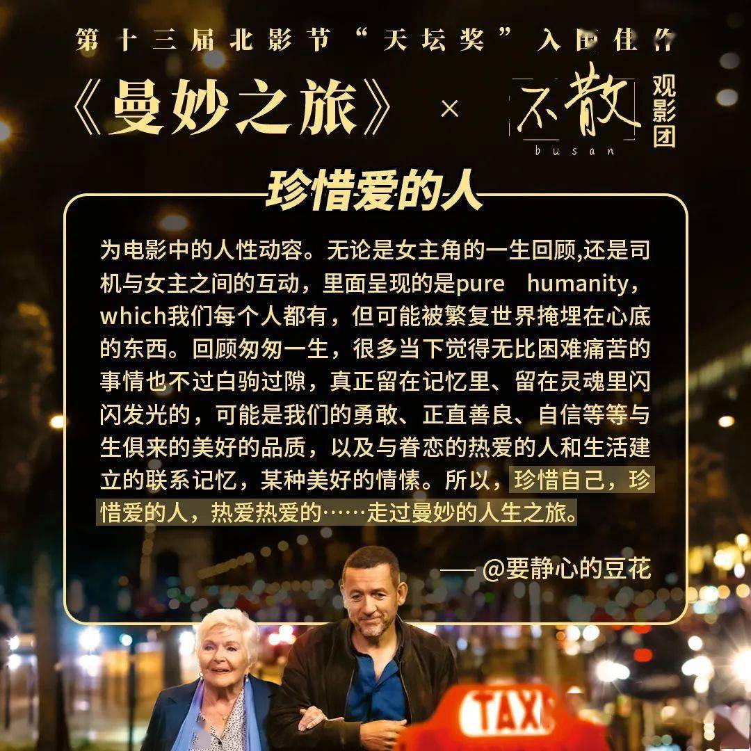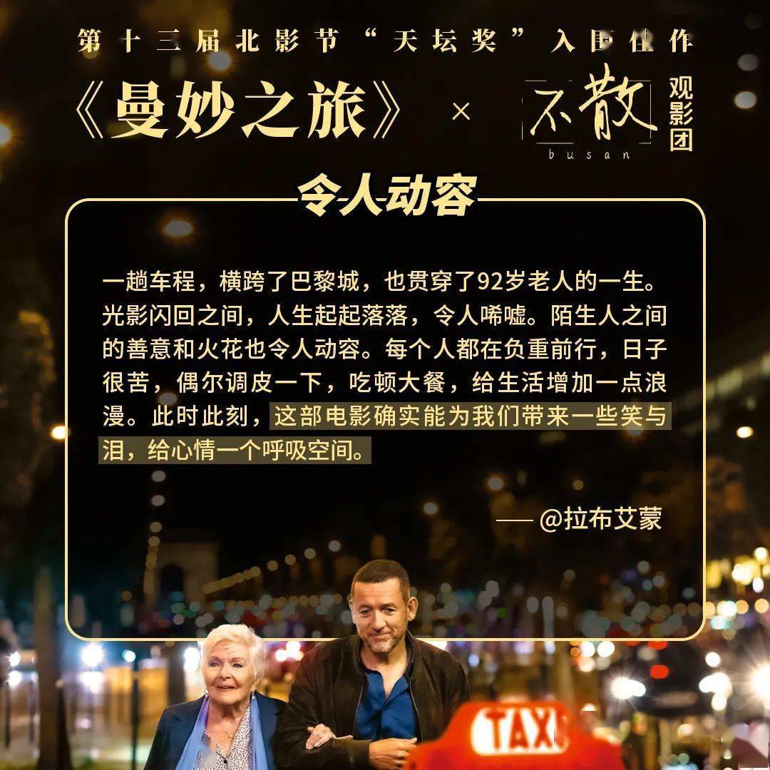 其中法國影片《曼妙之旅》講述了兩個身份、階級、年齡迥異之人在一輛出租車上相遇的故事,面臨財務危機的職業司機與92歲的優雅婦人談論人生,追溯過往,即便生活艱難,時光易逝,他們仍能找到一絲共鳴,短暫消解個體的孤獨。