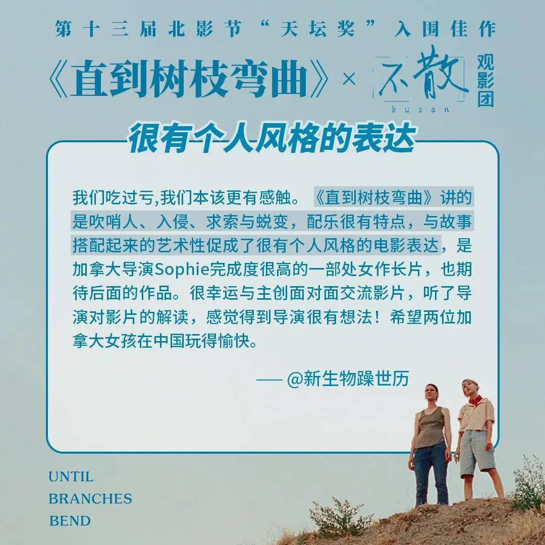 正如索菲·賈維斯的加拿大電影《直到樹枝彎曲》得到不少觀眾的認可,女導演拍的女性電影往往有著切身的觀察和精準剖析,16mm膠片為影片帶來外在的復古質感,影片內在又有風格化的創新。