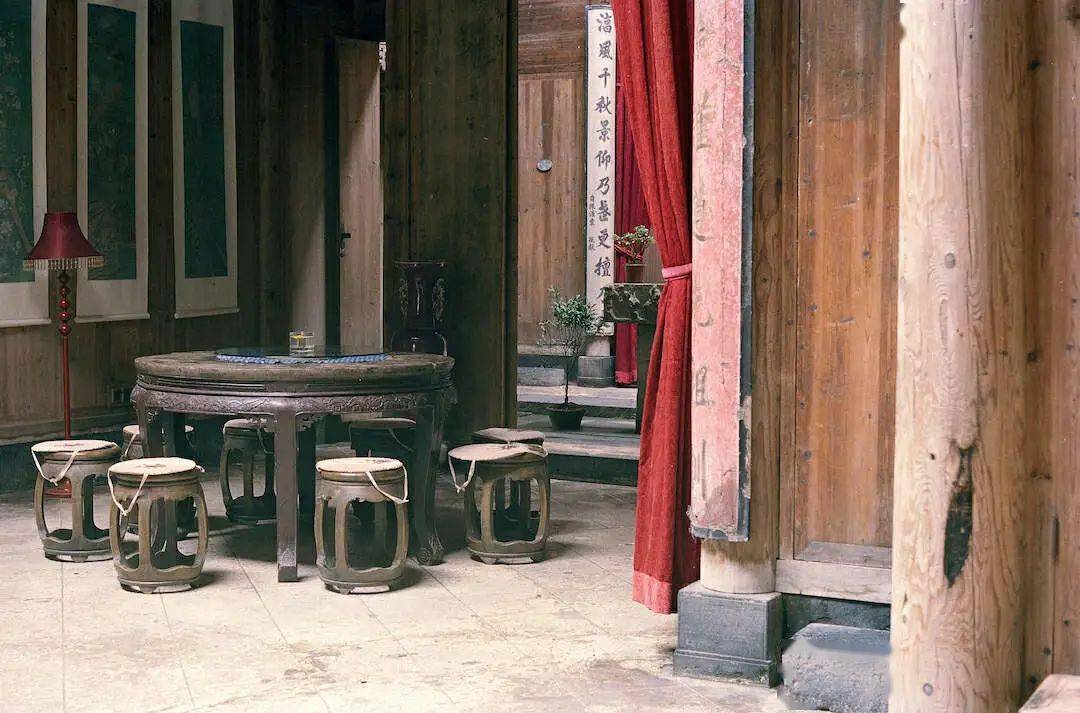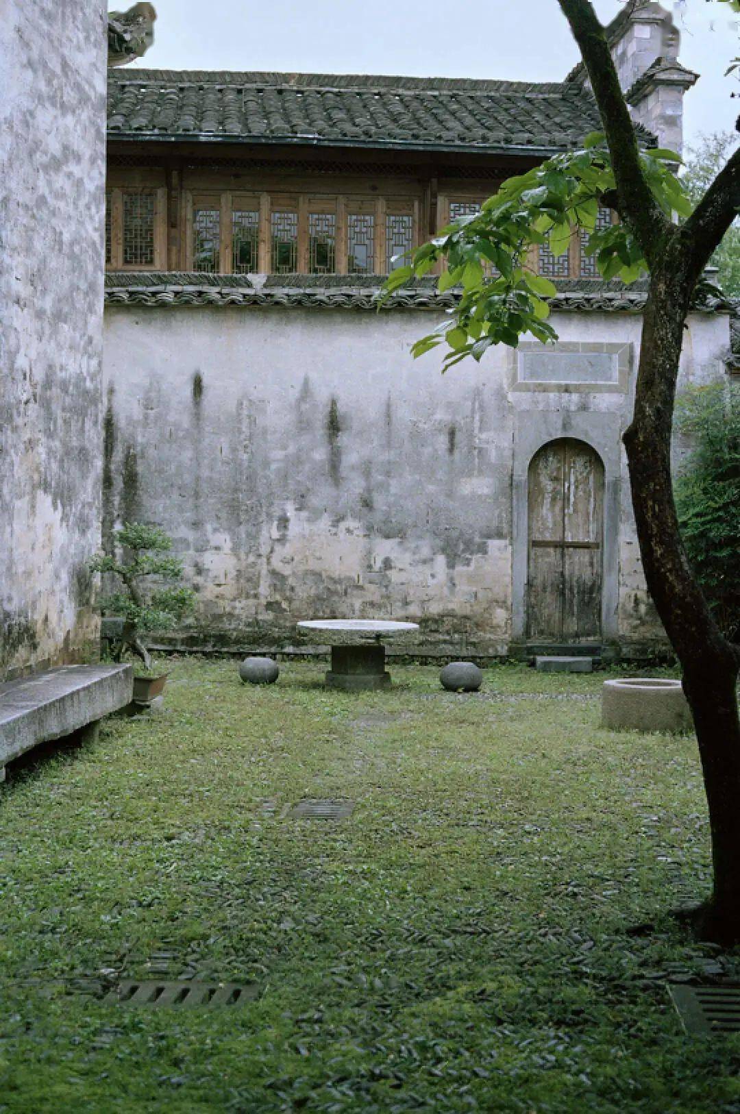 石砌的隔墻右側是左靖新砌的會客廳,屋內除沙發桌椅外,還有一個采暖用的鐵制火爐。左側是老宅遺存的官廳。官廳里的匾額、太師椅和器物的擺放完整地還原了古徽州廳堂的陳設。我在太師椅上坐了坐,視線落在天井中布滿青苔的魚池上,一堵高墻擋在魚池后,青苔在墻腳蔓延。