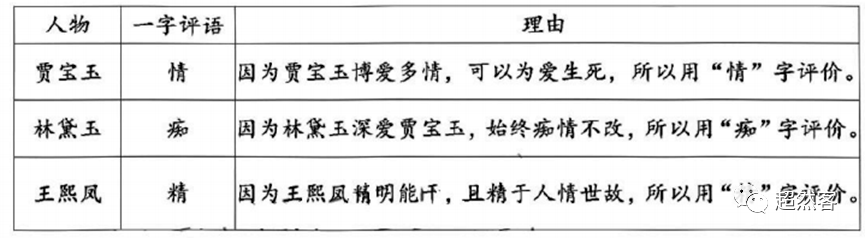 22.“一字評語”是以一個字來評價人物的形象特征,用語雖短小、卻常常能給出恰當準確的評價。《紅樓夢》中人物眾多,但各自形象鮮明、請仿照下表示例,從"賈寶玉、林黛玉、王熙鳳"中任選兩位,使用包含因果關系的句子闡述其"一字評語"的理由。