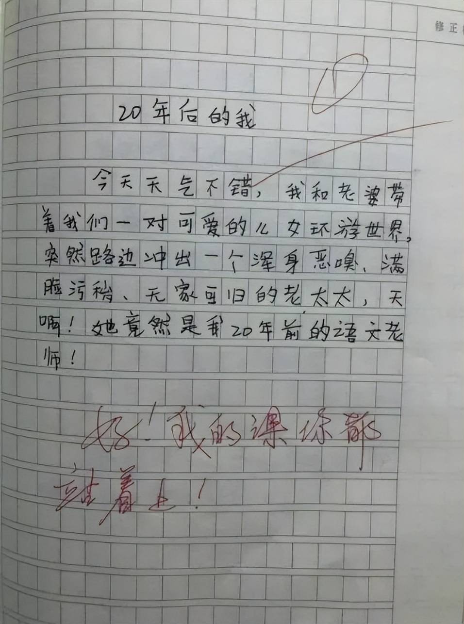 但這位同學就厲害了,時時刻刻惦記著語文老師,作文也忍不住要讓語文老師當主角,只不過主角的人設不太好,看到這篇作文和老師的評語,網友:話說早了。