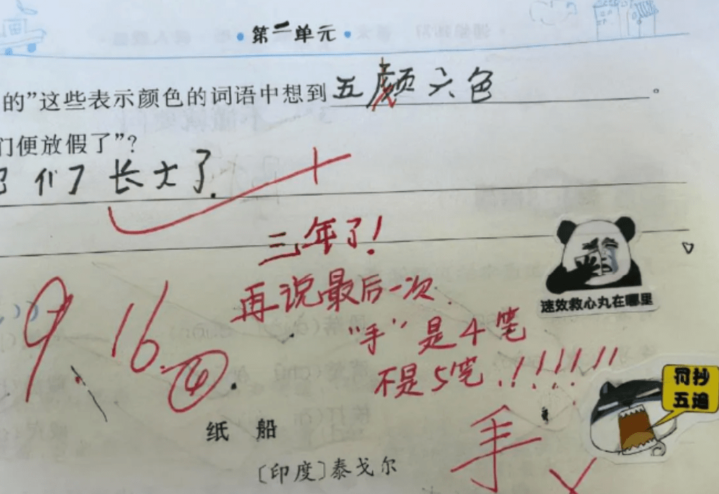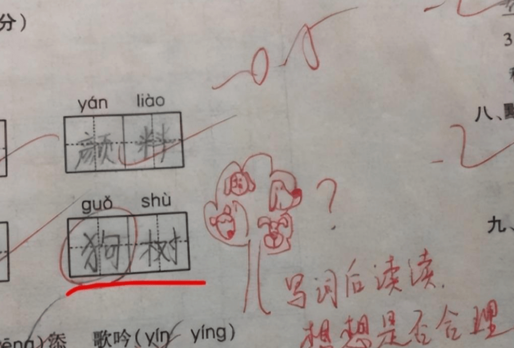 除了在分數上,老師會對學生們給予鼓勵以外,面對學生的錯題,老師也很有辦法,漢語拼音的拼讀出現了錯誤,老師給了叉號的同時,也寫了備注。