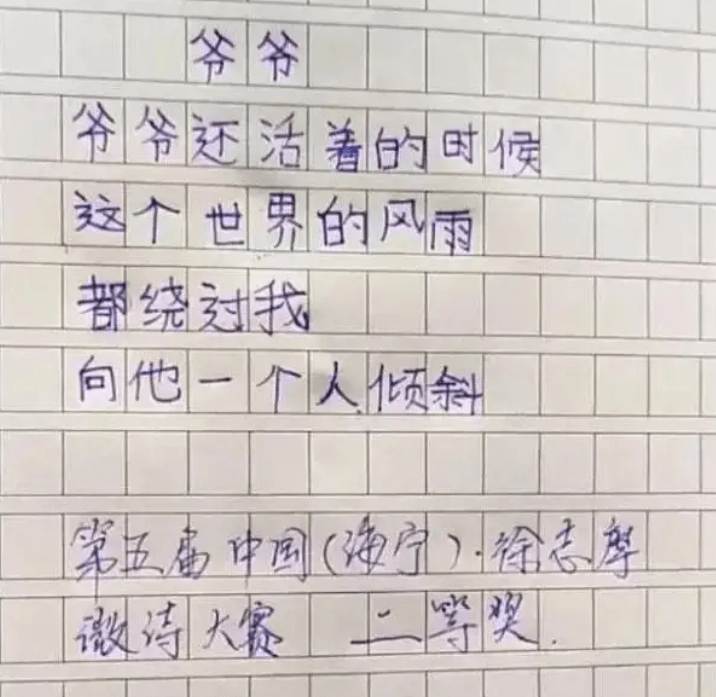 不少學生從小就被爺爺奶奶帶大,而且受隔輩親影響,有些時候在自己心里的地位比爸爸媽媽都高,其實這種心情也是非常感人的,小學生的文筆能這么好,也是挺少見的。