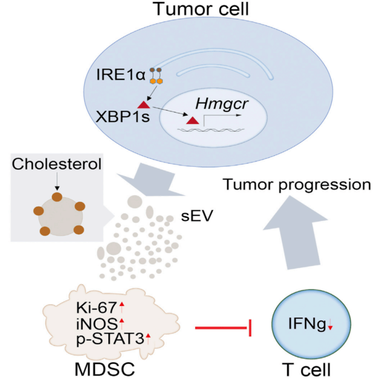 可以說,盡管很多研究都揭示了骨髓來源抑制性細胞可以促腫瘤的作用,以及 XBP1s 能促進腫瘤惡性進展中的多種機制,該工作發現腫瘤細胞 XBP1s 直接調控了膽固醇生物合成相關基因表達,并利用細胞外囊泡“遠程調控“抗腫瘤免疫,這些新的實驗數據也提高了人們的認識。