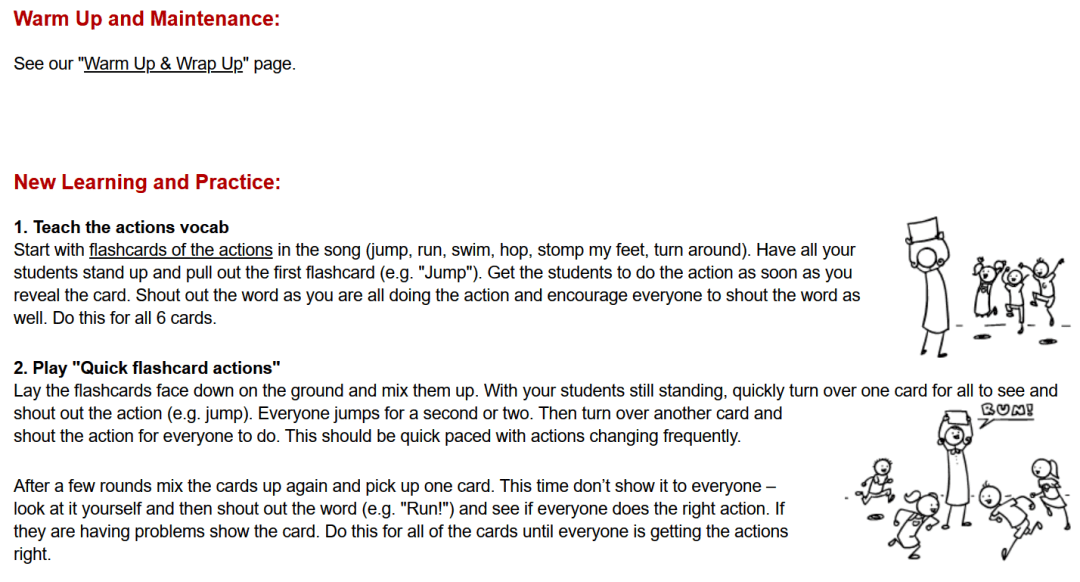 清楚的教學目標,目標句型和詞匯。豐富的教學材料,超級詳細的教學流程和解說。配套的歌曲、繪本等。主題非常全,能滿足老師的基本需求,可下載。以Can為例:
