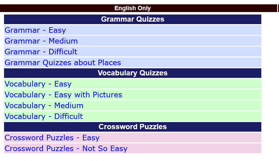 以英語為第二語言的語言教學資源站點,包括語法、詞匯等。有難度分類,根據學生的基礎找到相應的課堂或課后練習即可。