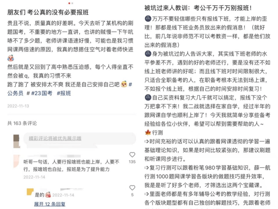 馨雅的觀察并非個例,鋅刻度留意到,在小紅書和微博等平臺,也已經出現越來越多的“考公人”表示,“考公真的沒必要報班”。
