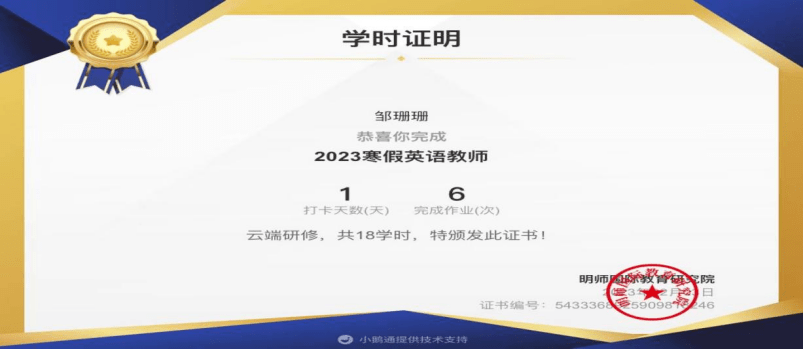 仰望星空,名師們身上那種從不停止追求教育理想的精神正在閃爍!俯瞰大地,我們正把初長的根須努力植進貧瘠的土地! “不經一番寒徹骨,哪得梅花撲鼻香。” 作為名教師工作室的一員,我將不斷學習理論知識,用理論指導教學實踐,研究和探索教育、教學規律,把科研和教學結合起來, 做一個專家型、學者型的教師,使自己具有英語學科知識方面的前瞻性。感恩遇見,感謝陪伴!