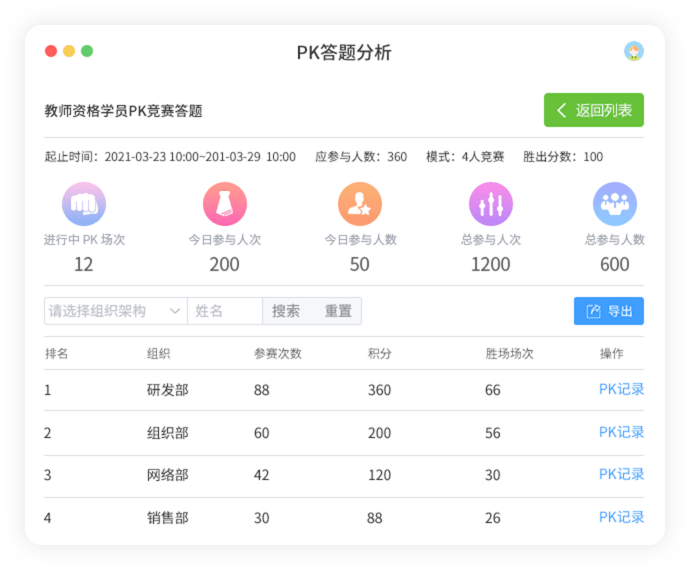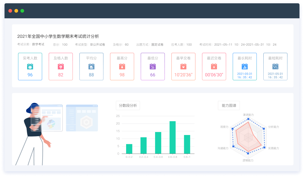 考試結果自動生成多維度統計,讓各項數據更直觀清晰