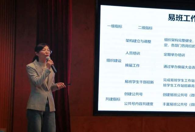 歐志云老師在培訓中強調易班建設工作的根本目的是做好大學生的思想政治教育工作。圍繞這個目標,易班發展中心制定了四個工作方向,包括:組織建設、共建指標、工作實施,以及工作成效。易班通過指導各學院健全易班學生工作站的組織架構、開展學生干部培訓、舉辦各項校園活動、創建易班公共號、豐富易班微社區內容、組織學管人員參與各項省級高校思想政治工作項目等方面的工作,加強我校網絡思政平臺建設,構建我校思想政治平臺矩陣。