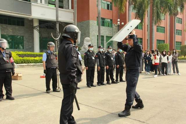 我校于2023年3月3日在綜合樓廣場,在保衛處處長林小龍的組織下進行防恐防暴、突發事件處置實操演練。
