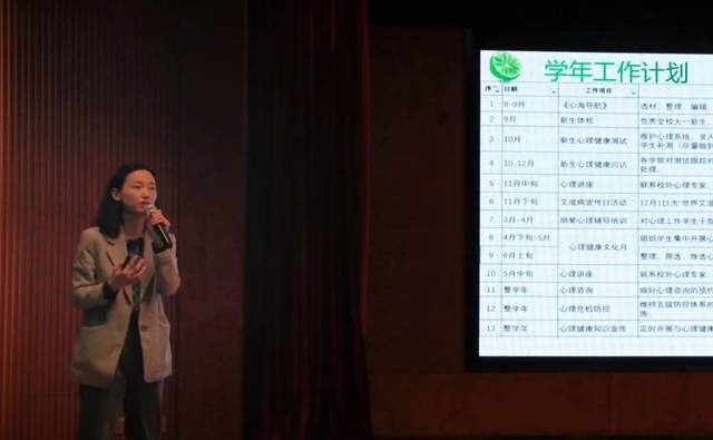 孟洋洋老師詳細講解了心理健康教育工作的各項流程以及相關細節。她指出,要讓心理健康工作順利進行,歸根結底是需要老師多多關注學生心理狀況,比如:在收集和分析學生信息時應該耐心仔細,及時發現問題,注重學生心理健康教育等。心理健康教育工作的順利開展,可以提升大學生的健康素養,促進學生身心健康和全面發展。