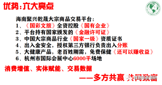 關于項目背景,據官方資料顯示,聚興乾晟大宗商品交易平臺隸屬于國務院(國資委)旗下集團中國農業發展銀行、中國農發基金投資機構下屬北京國彩100%控股的國有企業。
