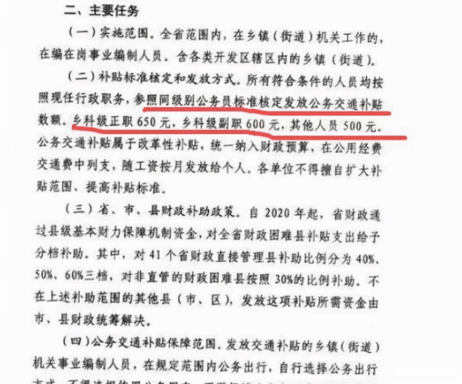山東省的補貼方案是“直接發放現金車補”,分為鄉科級正職、鄉科級副職以及其他人員三個等級。