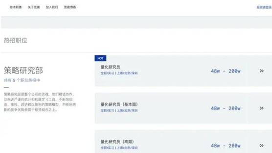 寬德投資官網顯示,其策略研究部的“量化研究員”崗位年薪48萬元起,最高可達200萬元。