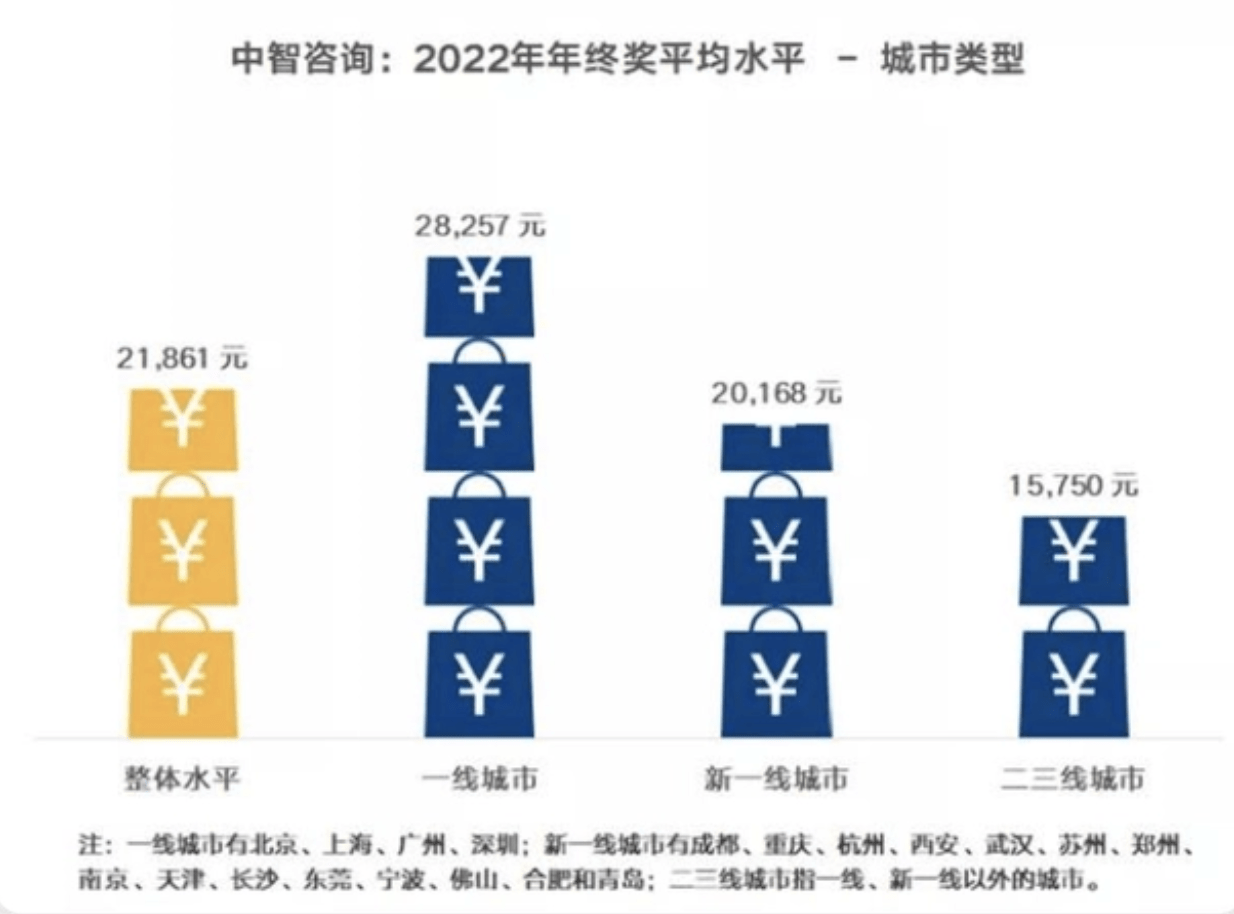 近日,根據中智咨詢近日發布的《2022年企業年終獎發放計劃調研報告》,2022年74%的企業計劃發放年終獎,與2021年90%的企業發放比例相比有所回落,和2020年疫情期間73%的發放比例基本持平。報告還顯示,2022年企業年終獎相當于月薪的倍數,整體平均為1.8倍,相比2021年的2.1倍有小幅下滑,發放額度回落至2020年疫情期間的水平。2022年國內企業年終獎平均水平為21861元。