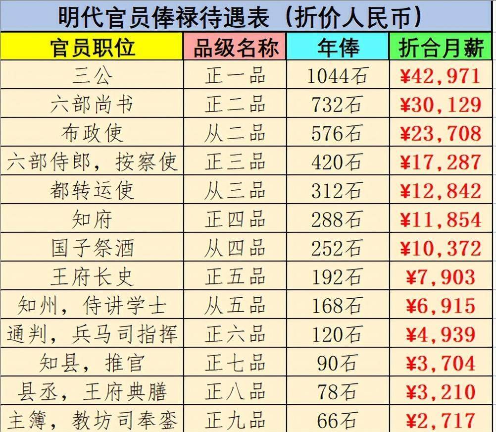 到了明朝,官員的俸祿水平驟降。相比大宋,可謂低得令人發指——明朝初年官員俸祿之所以如此之低,和當時明朝建立初期戰火之后,休養生息的國情有關。