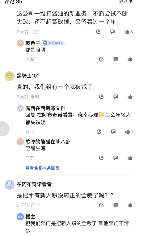 還有用戶表示:「我們部門把新入職的全裁了……」